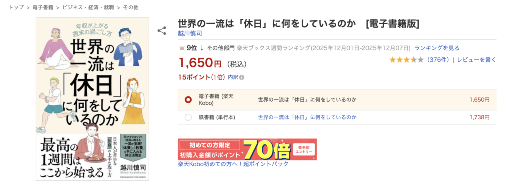 世界の一流は「休日」に何をしているか 著:越川 慎司